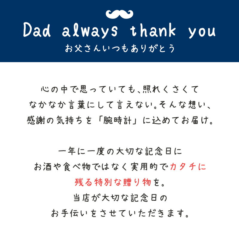 普段はなかなか会話が少なく、想いを伝えれていない方も多いのでは無いでしょうか?この機会にぜひ日頃の感謝を込めて特別な誕生日プレゼントを贈ってみましょう!お酒や食べ物もいいけど思い出が「カタチ」として残る腕時計はプレゼントとして大変喜ばれます。